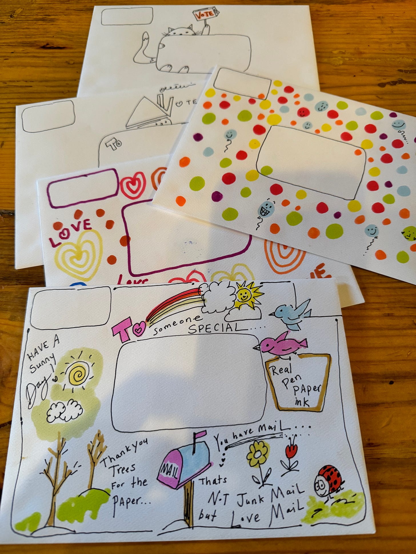 At the end of the week we came together for a group zoom session And drew envelopes together to mail out and encourage people to vote in the U.S.